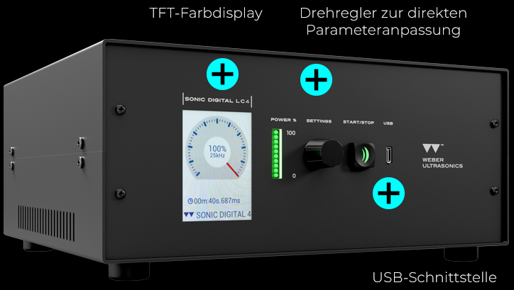 • Menügeführte Steuerung über Drehregler und TFT-Display